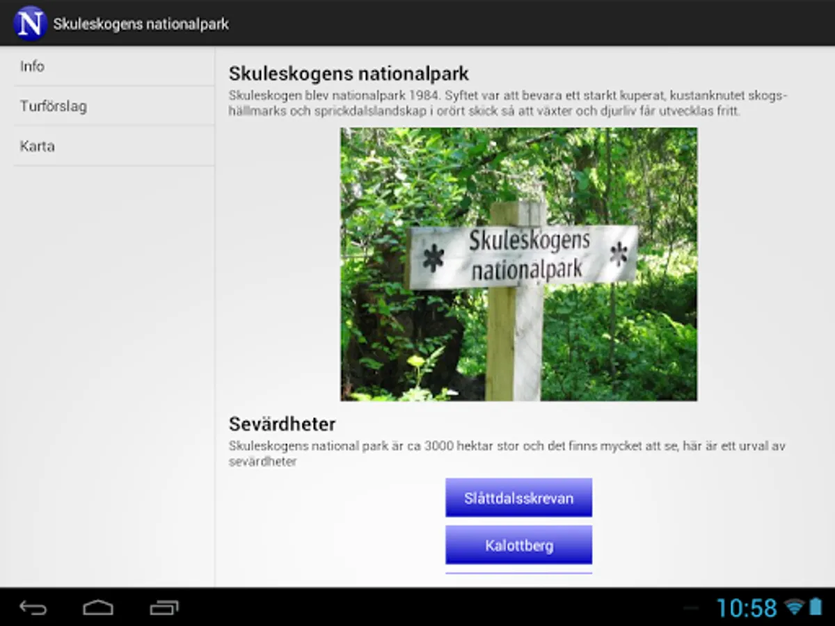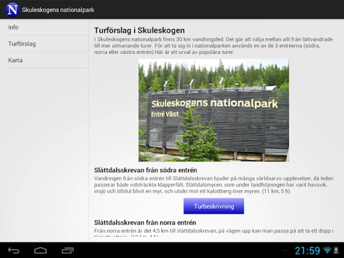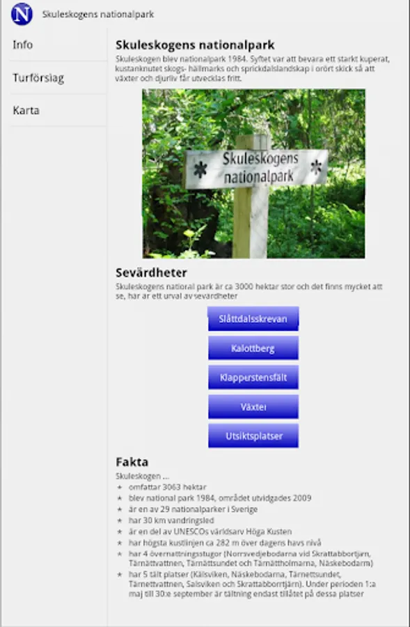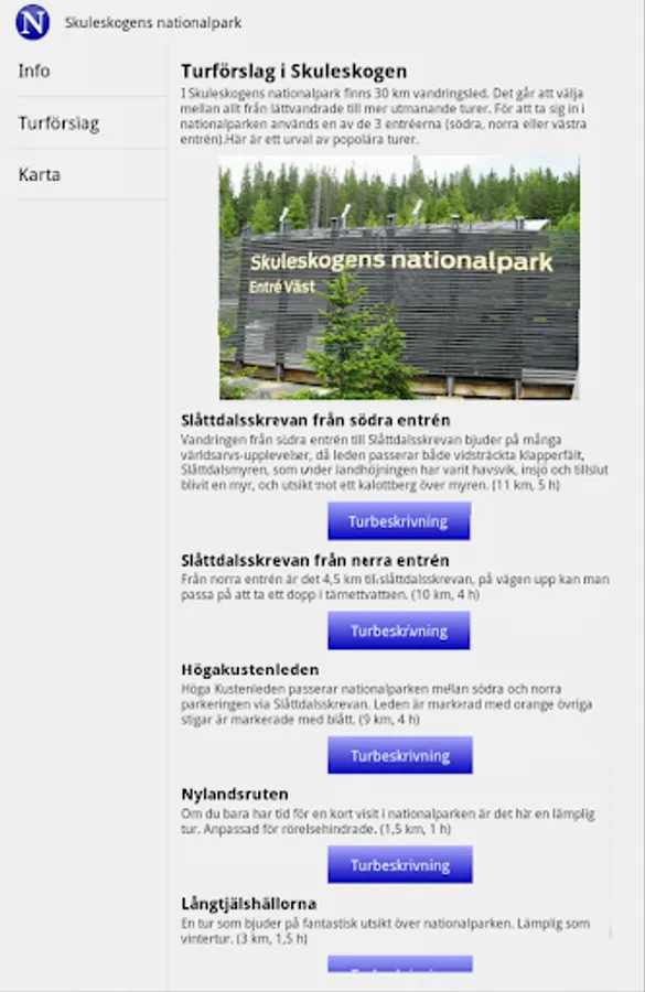 Your guide to Skuleskogen National Park, for those who plan to visit Skuleskogen National Park or simply want to learn more about the National Park. The app contains information including if Skuleskogen sevärheter and suggestions for tours. In turförslagen will find tours for everyone, from easy tours, adapted for disabled people to tougher trekking to the magnificent Slåttdalsskrevan. See you in Skuleskogen National part of the UNESCO World Heritage High Coast.