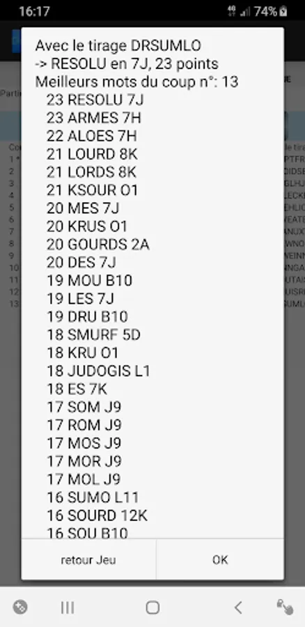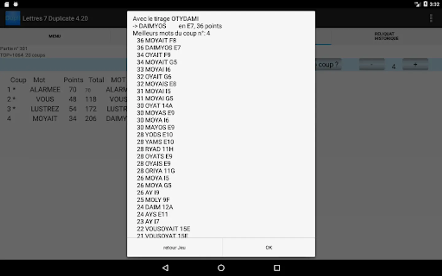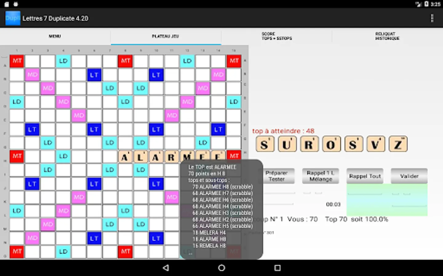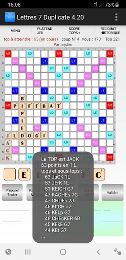 An "anagrammeur" indicates all the possible words with the letters of the draw.