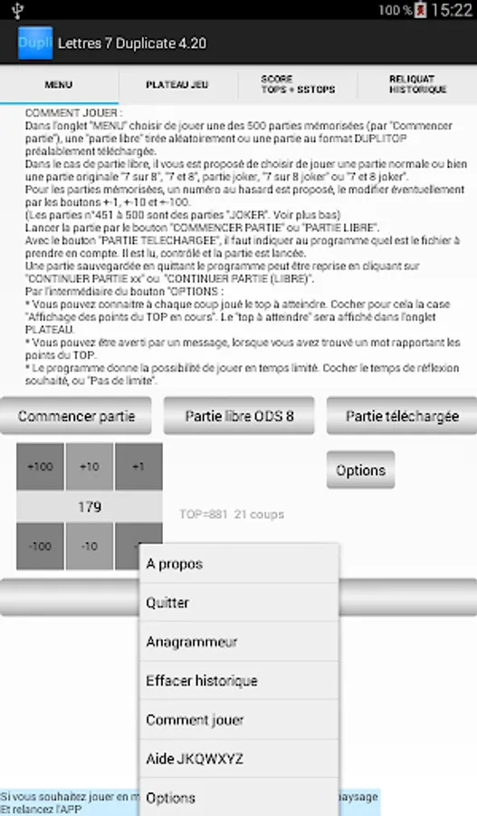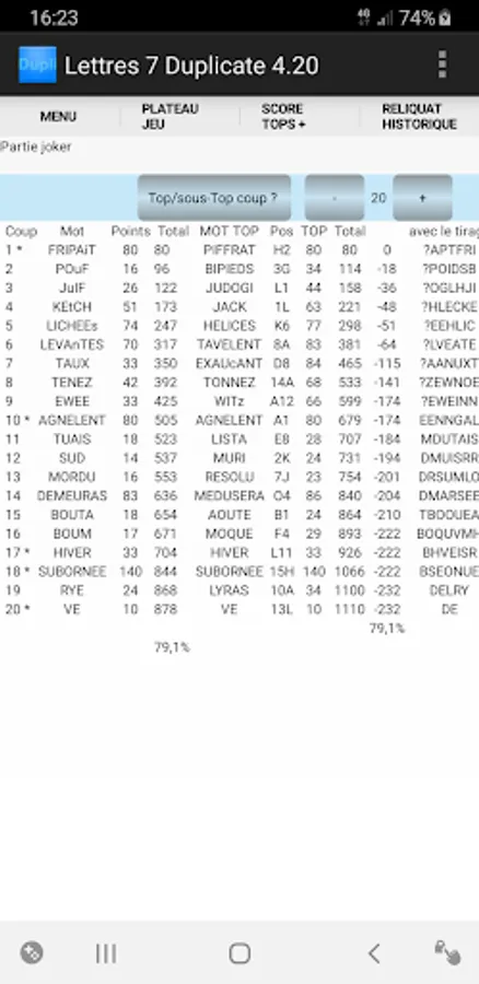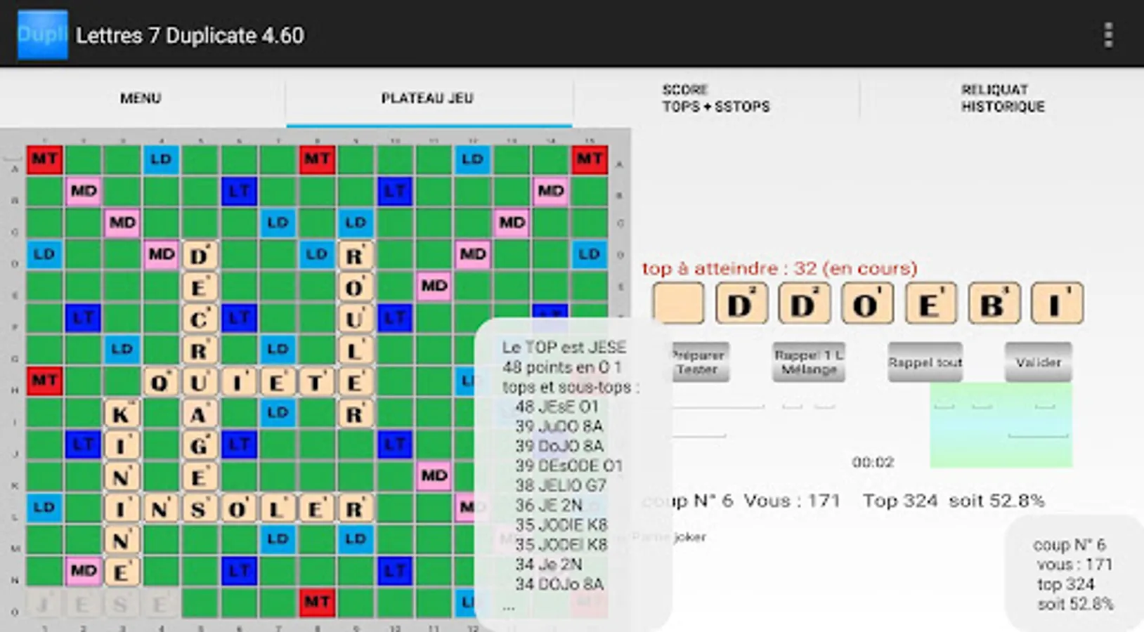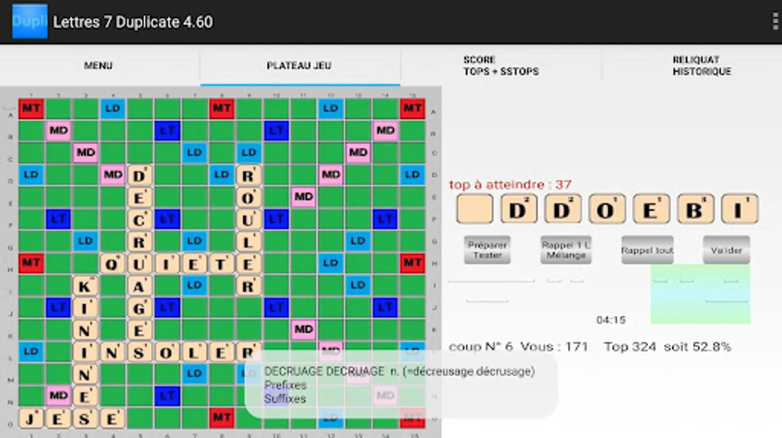 An "anagrammeur" indicates all the possible words with the letters of the draw.