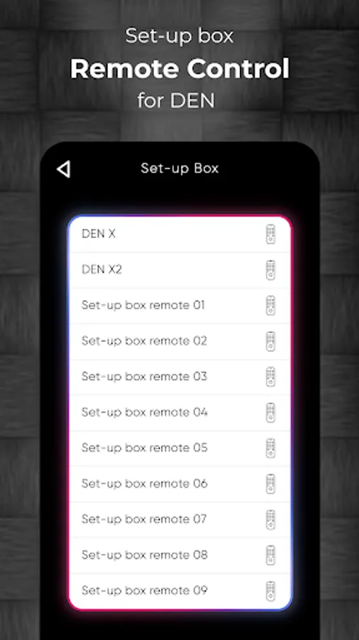 Use this Remote Control For DEN app and instantly convert your smartphone into a remote mobile that works as a TV remote control. This Powerful remote control app is easy and free to use by anyone. Remote Control For DEN app which allows users the option to handle Set Top Box with your smart device. It is an easy and simple way to convert your mobile into Remote control.
