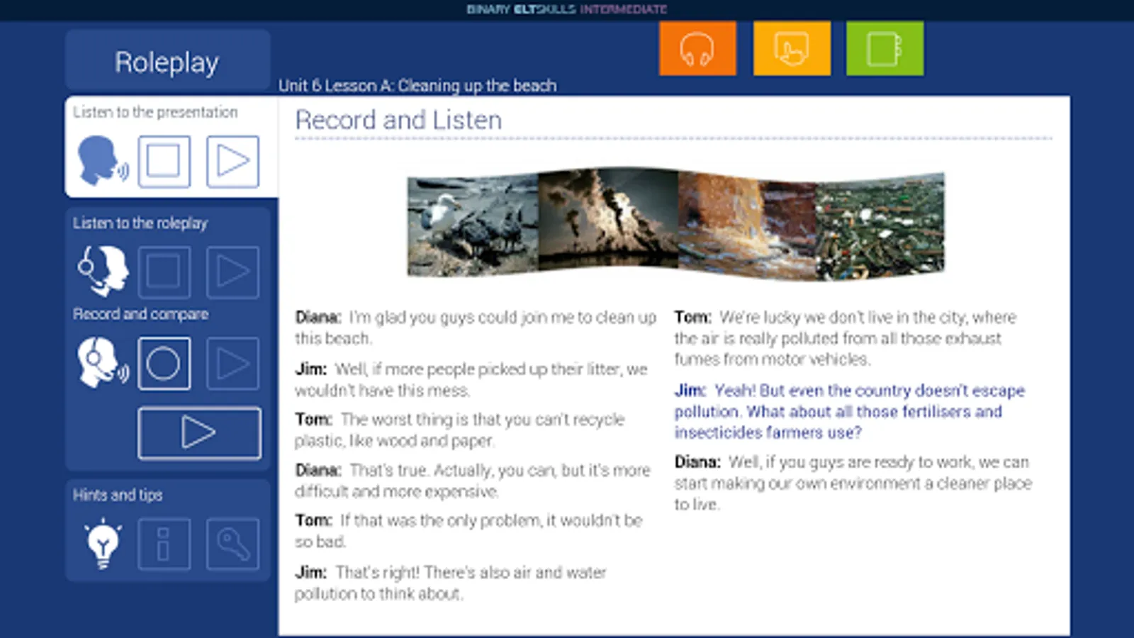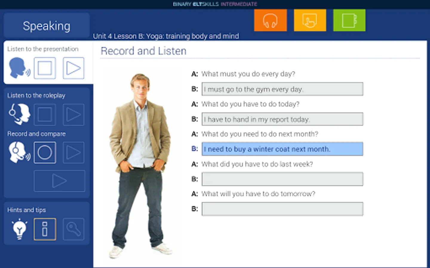 Binary ELT Skills App will help you practice your English listening and speaking skills anywhere and anytime.