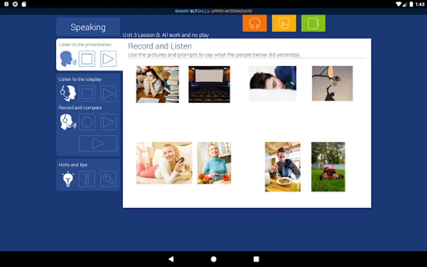 Binary ELT Skills App will help you practice your English listening and speaking skills anywhere and anytime.