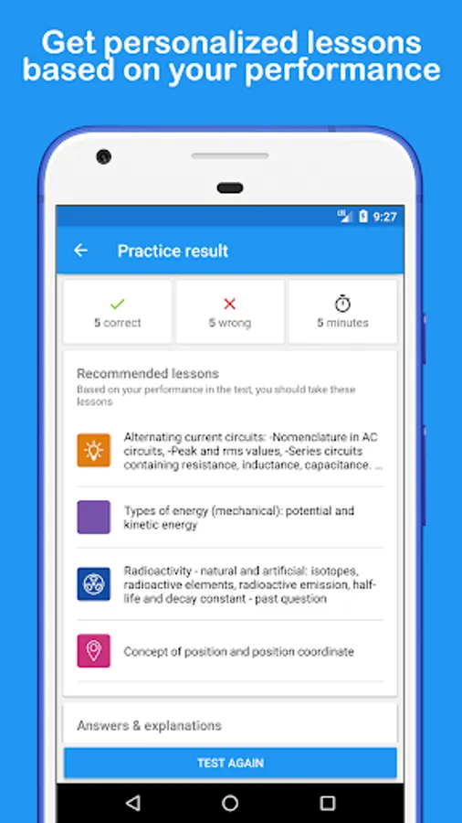 - Get lesson recommendation based on your performance in a test.