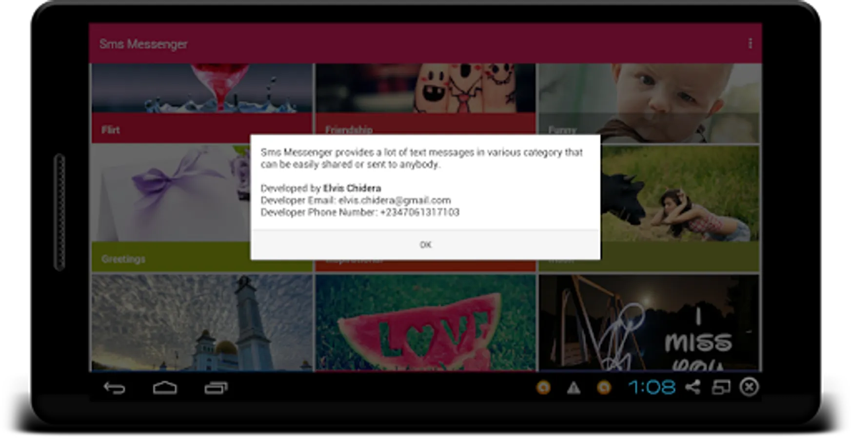 Sms Messenger provides text messages in various category that can be easily shared on various social network or apps installed on your phone. With this app, you can easily pick out a message you like and send to anybody.