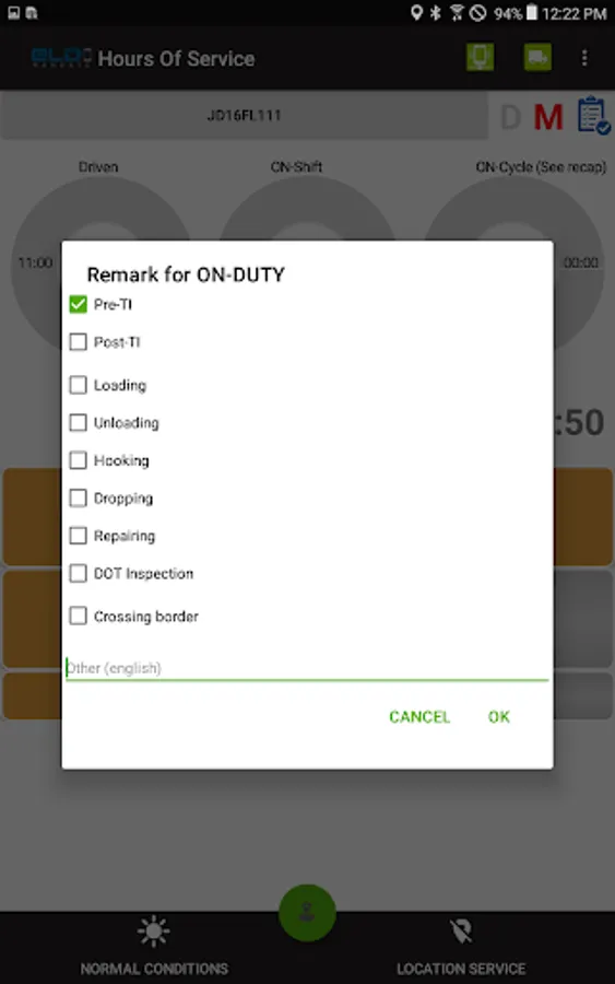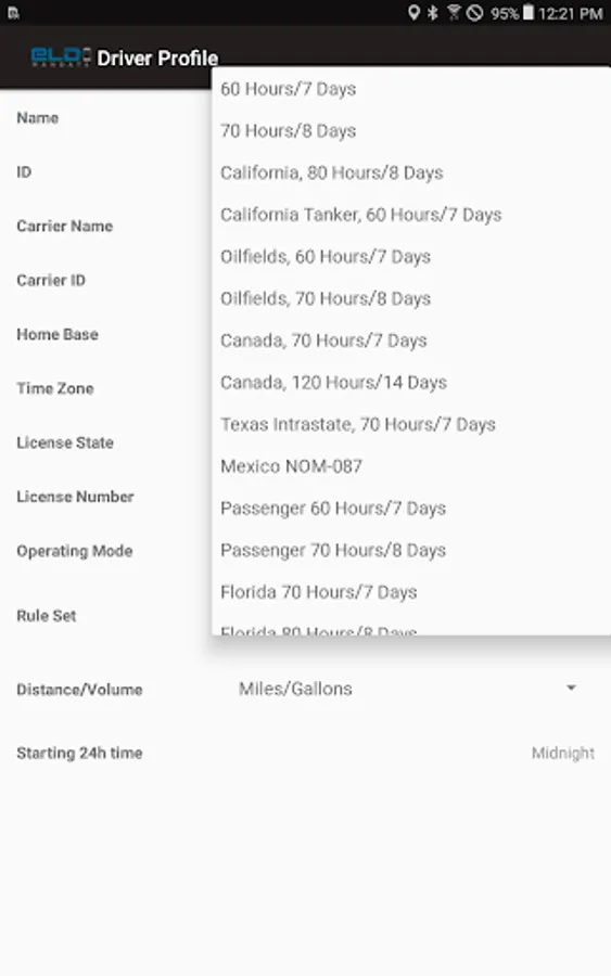 Compliant app to record driver duty status and meet the following regulations: