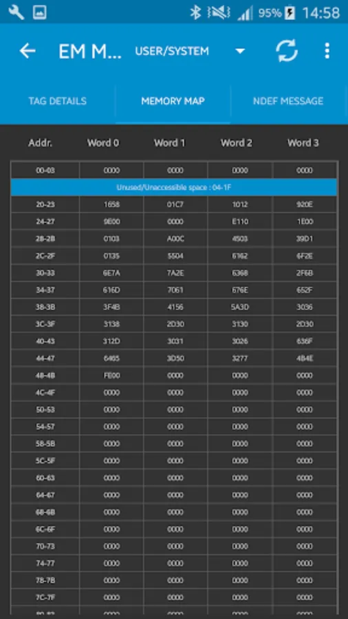 b. "Memory Map" for a quick preview of each memory bank content. Read and Write of each unlock memory word are available.
