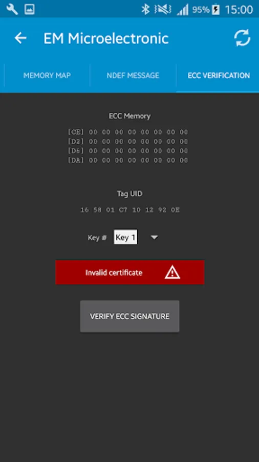 d. "ECC Verification" to check the digital signature contained in the tag memory.