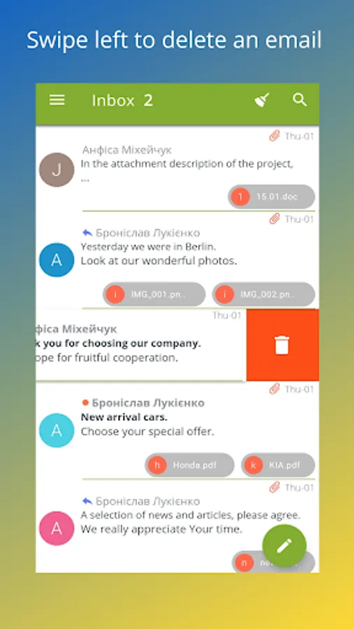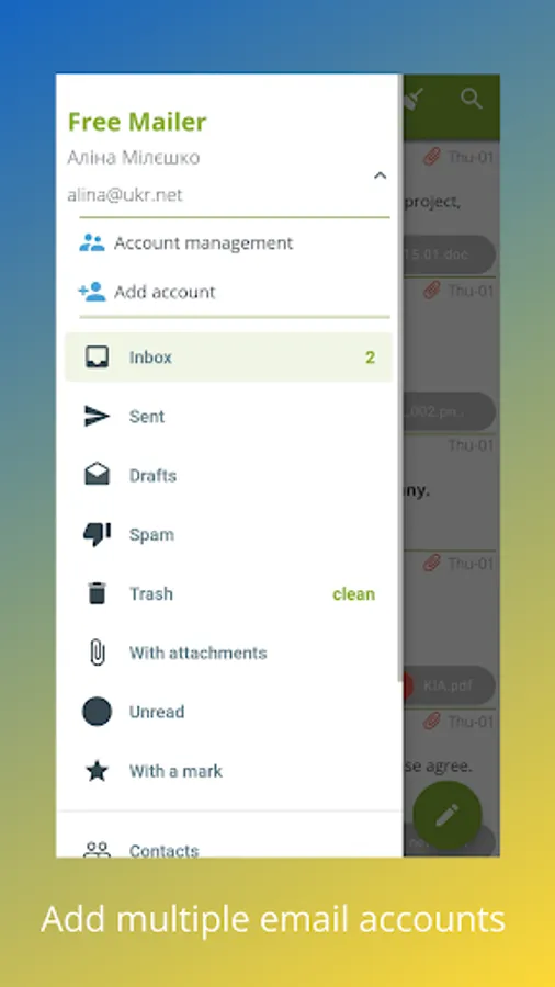 The app supports any POP3, IMAP, SMTP-enabled mailbox and all popular email services: