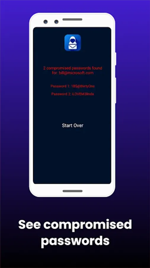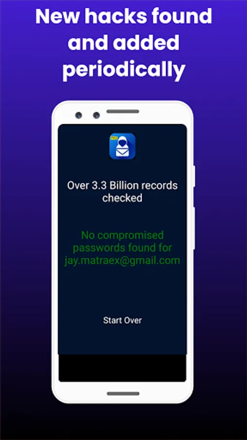 Here is how it works: download Hack Check on your Android device, enter your email address, we send you a code to your email address to confirm that you own the account, once you enter the code we display any compromised password to you. It's that simple. Other security tools require that you create an account on their service, which introduces yet another password and service that can be breached, however we use a one time security code method which will never allow your account to be breached. (Especially if you are like MANY others who seem to use the same password for MANY different online accounts)