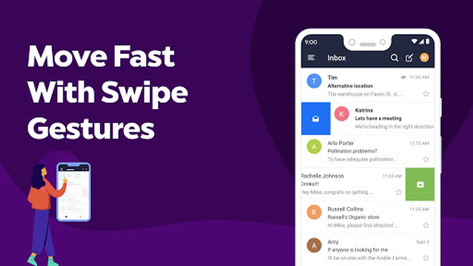 - Swipe through your inbox to quickly find emails, archive emails, and mark emails that you need to revisit as unread.