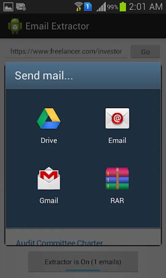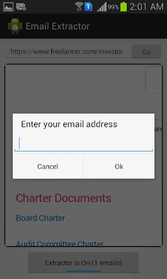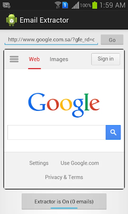 You can navigate to any web page. As soon as the page loads, this app captures all the email addresses on the page and saves them.