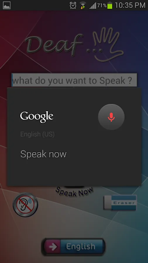 And in both Arabic and English, this is the best application for the Deaf and Dumb, characterize all existing applications in the Google market is allow you to more than one way to communicate with others, our version is the first and we will keep you in the support and development