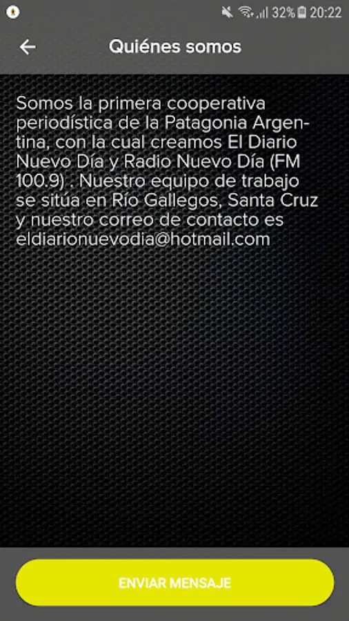 We are the first Cooperative of Journalists of the Patagonia Argentina, developing the New Day New Day Journal and Radio from Rio Gallegos, Santa Cruz