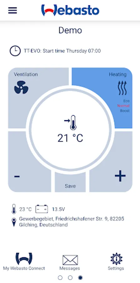 Use the intuitive ThermoConnect app to pre-heat your vehicle from anywhere in the world. Create versatile start timers, monitor vehicle cockpit temperature and battery voltage or even check the current vehicle location with the help of an integrated GPS. You can even create a geo-fence so that you get an alert when someone moves your vehicle without your consent.
