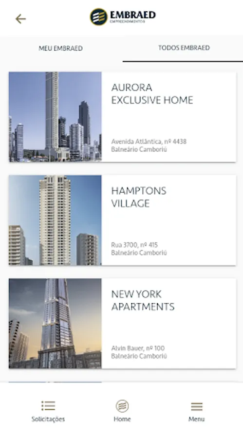 Application for users who own Embraed Empreendimentos apartments. In this application, it is possible to request technical assistance visits, consult documents relating to the user's apartments and also view the progress of the apartments that are still under construction.