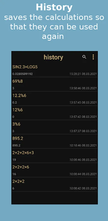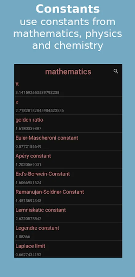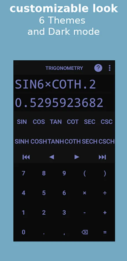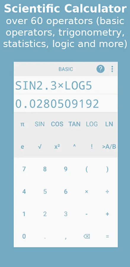 • over 60 operators including basic operators, trigonometry, statistics, logic operators and more