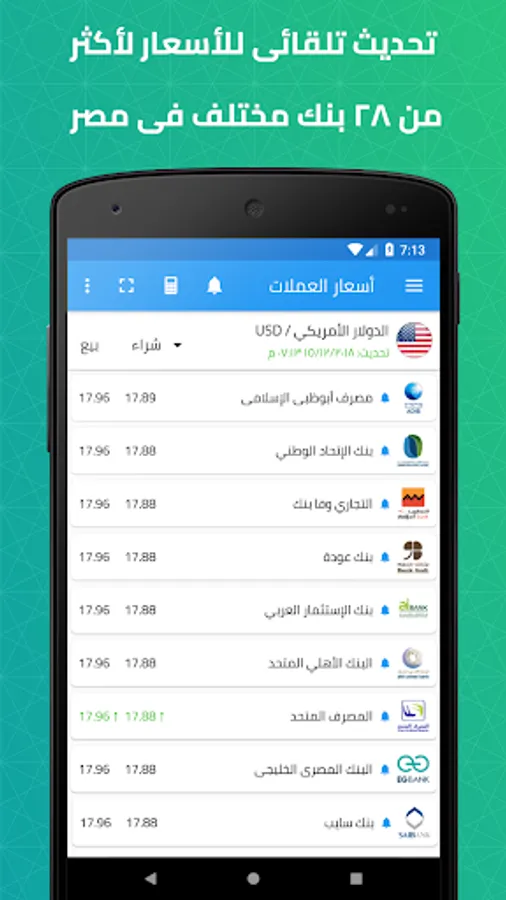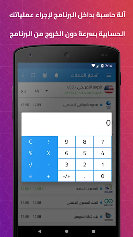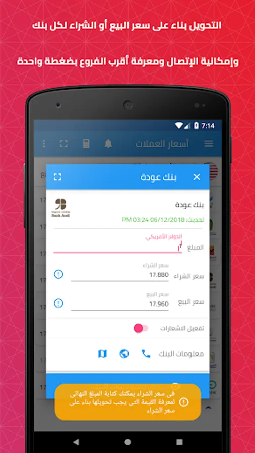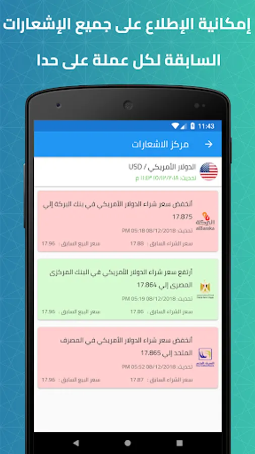 * Displays the average price of the dollar in all banks to form a clear view of the market