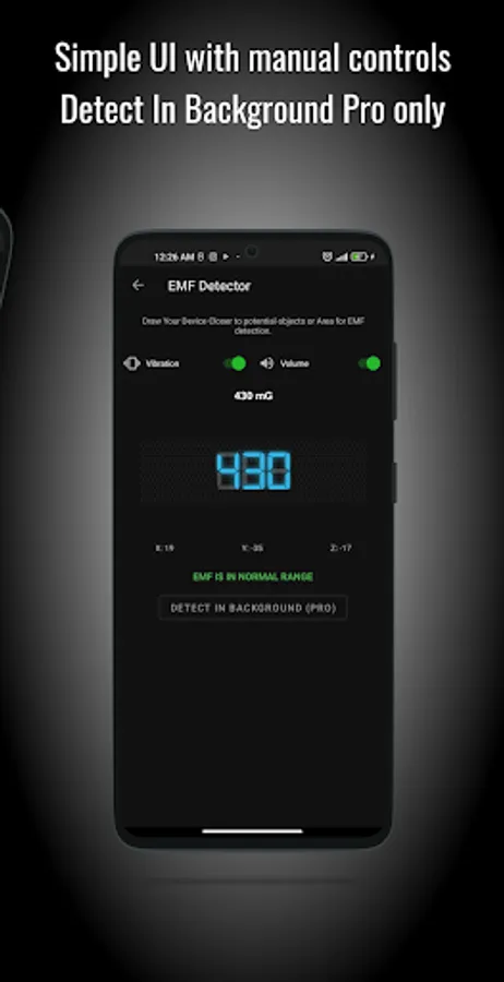 This Ultimate emf detecter & emf scanner app for android have two types of meters to indicate the emf readings. One is digital emf meter and other one is analog emf meter. This free electromagnetic field sensor app also produces beep sound when a potential emf is detected.