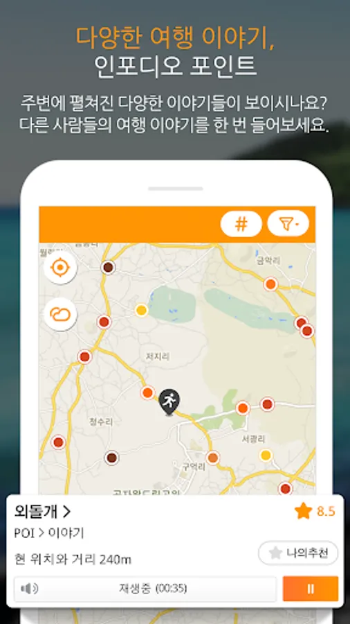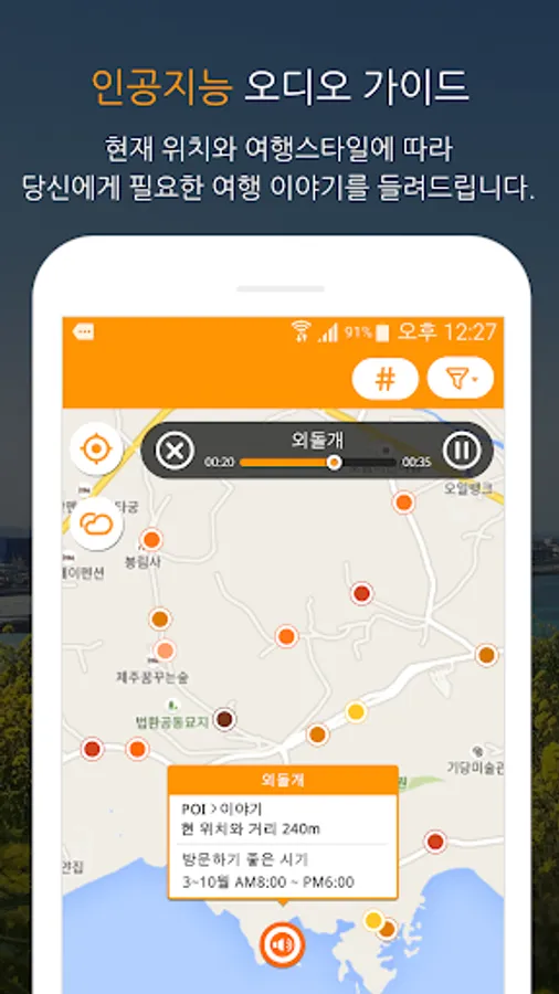 - Guides the surrounding tourist information by voice for the moving user.