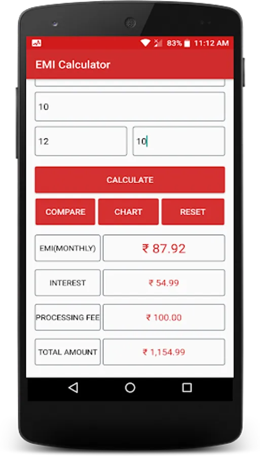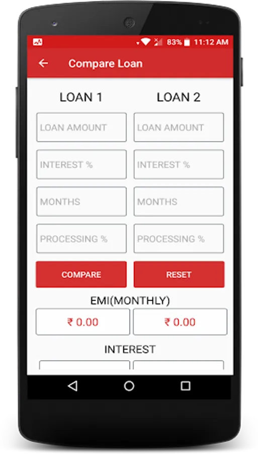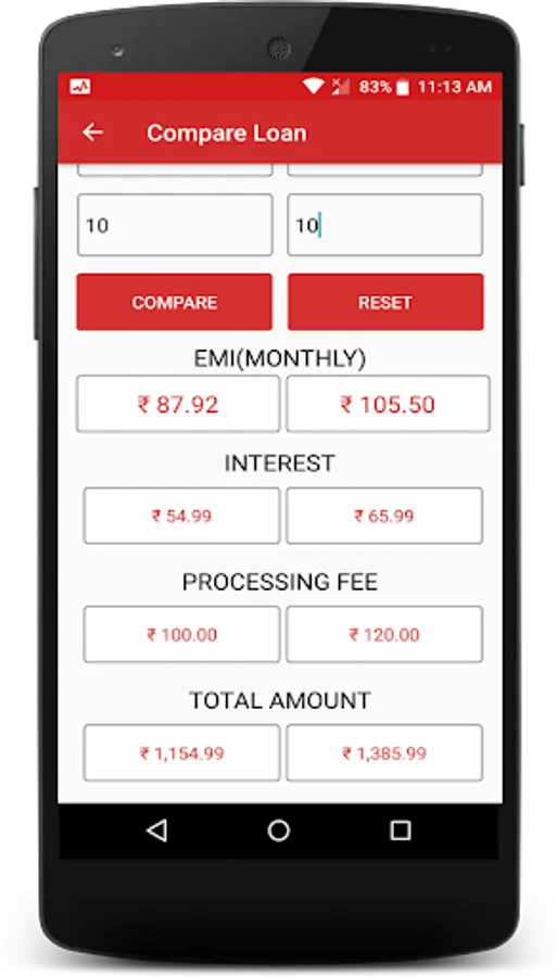 * Easy option is available to compare between two loans.