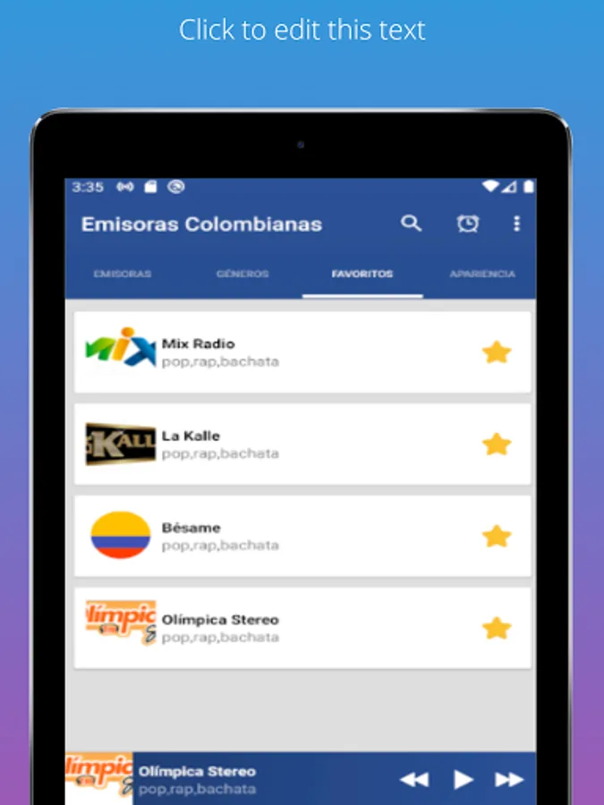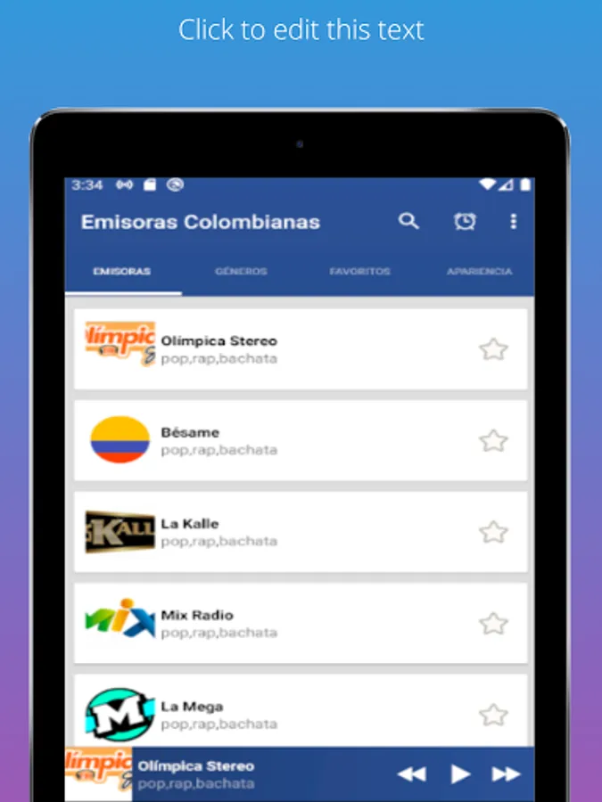 Download the Free Colombian Stations app now and get access to more than 1000 live Colombian stations for free! With a simple, modern, and easy-to-use interface, this app gives you the best experience for listening to music, news, sports, and podcasts online.