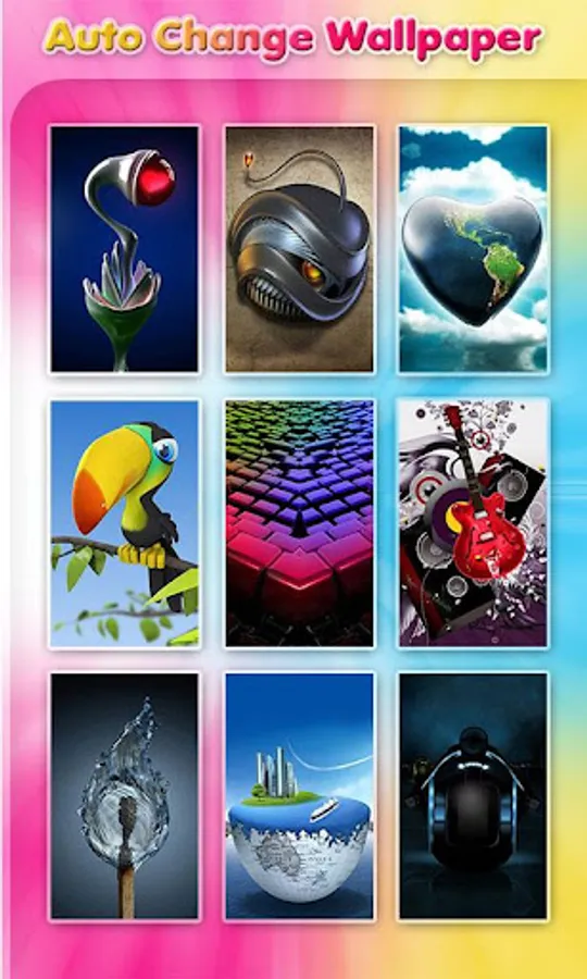 Auto Change 3D Wallpaper wallpaper app which changes the wallpapers at a given time interval automatically.