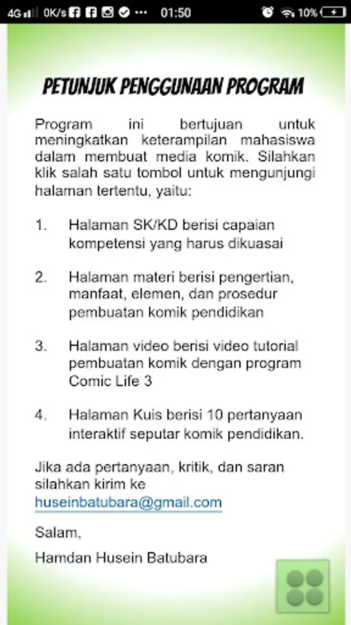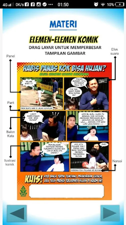 Komikpen explains the basic concepts of comics and how to make educational comics. Momikpen material is equipped with interactive video tutorials and quizzes so you can test your understanding of how to make educational comics. Good luck.