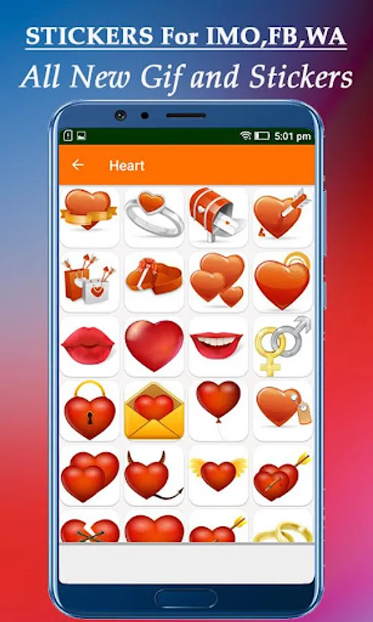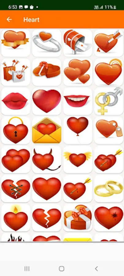 2. Attractive categorization of heart soft stickers for FB, WhatsApp