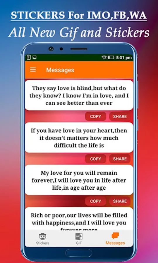 We introduced a large variety of social chat stickers for Imo, fb, WhatsApp media. This helps you to chat more n more without any frustration.