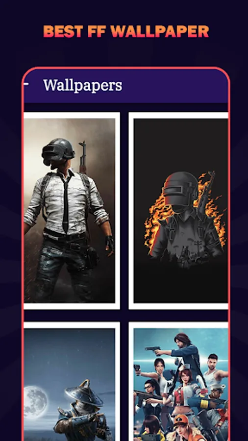 In this app also download best ff wallpaper and save into your device. You can find difference wallpaper in this app. Very unique and selective ff wallpaper are available in this app.