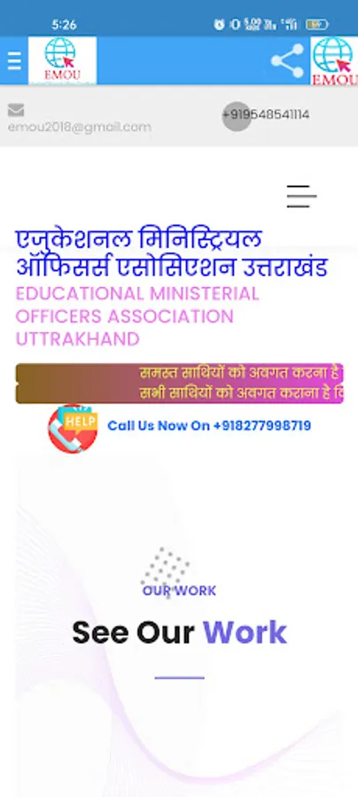 एजुकेशनल मिनिस्ट्रीयल आफिसर्स एसोसियेशन उत्तराखण्ड द्वारा मोबाइल एप्प का निर्माण किया गया है जिसका मुख्य कार्य समस्त सूचनाएं मिनिस्ट्रीयल कार्मिकों को उपलब्ध करना । इस दिशा में कार्य प्रगाति पर है समस्त मिनिस्ट्रीयल साथियों से सहयोग तथा सुझाव अपेक्षित है।कृपया अपना सुझाव वेबसाइड के माध्यम से भेजने का कष्ट करें। ताकि एप्प को नई दिशा मिल सकें। वेबसाइड के उद्देश्य|