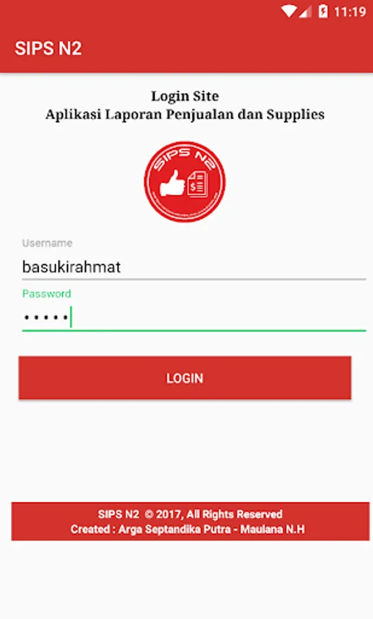 SIPS N2 is an application develop by PT.Global Insight on Top (Green Nitrogen) to be used by each operator in the sales outlet to report the results every day, in addition to reported sales of this application can be to report the Number Entry and Supplies Electrical outlets and Token in outlet.Setiap Mandatory inputting been closed Shift Every sales report, with this application report sales results can be computerized in the central office PT.Global Top Insight (Green Nitrogen)