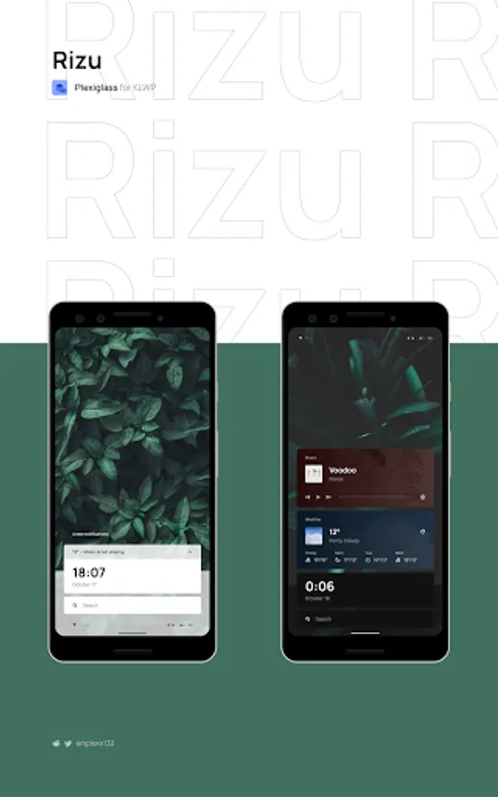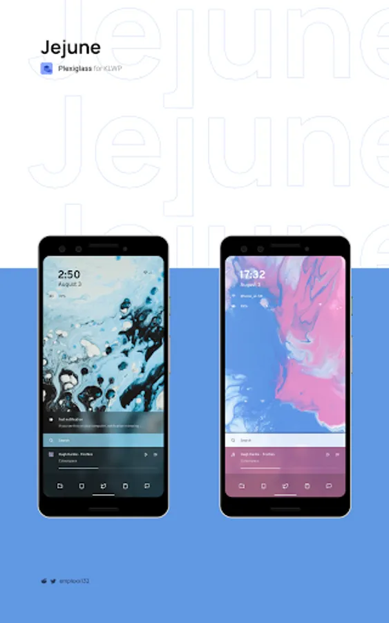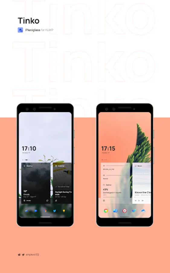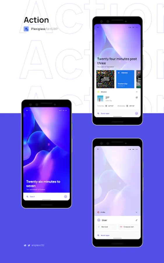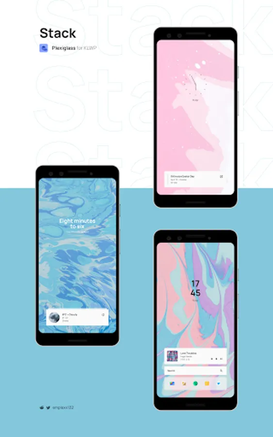 Plexiglass offers a set of pretty and functional homescreen setups for KLWP. The themes in this pack are optimized for all aspect ratios.