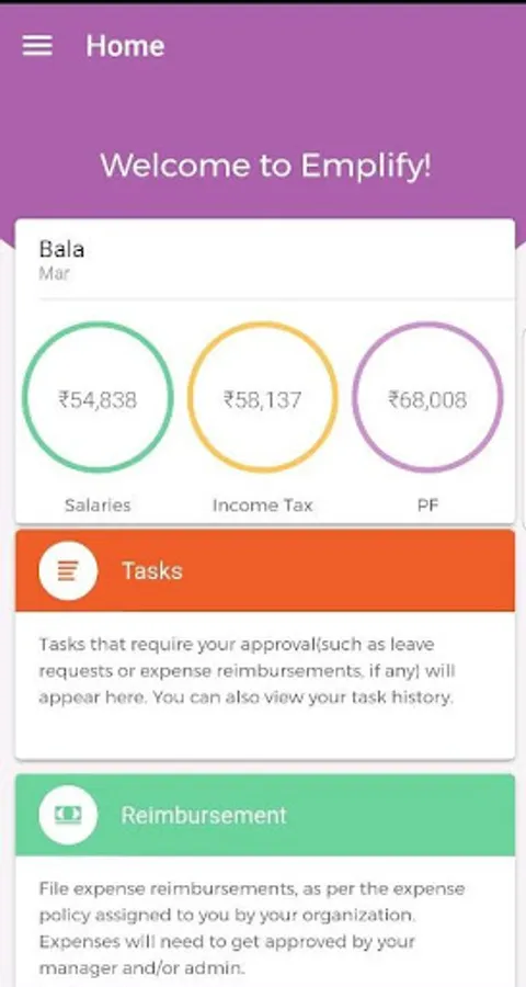 Emplify is India's best free forever payroll and HRMS software. Available on web as well as mobile, Emplify allows an organization to manage payroll, Employee data, customise CTC structures, leave & attendance, group insurance, promotions, additions & deletions, income tax, PF, ESIC, expense reimbursement, customisable leave/holiday/expense policies, and more!
