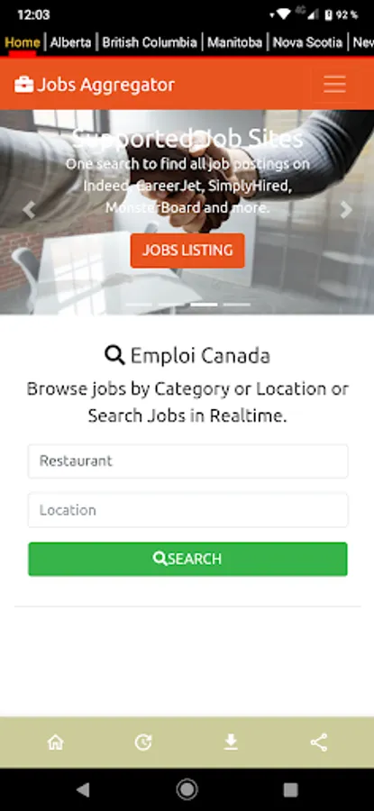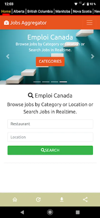 All-in-one means that within a single app you will find job postings from many of the most popular job search platforms in a single app. Emploi Canada is a very useful and easy to use Job application, on the homepage you will find everything that is important to find your new job in Canada.