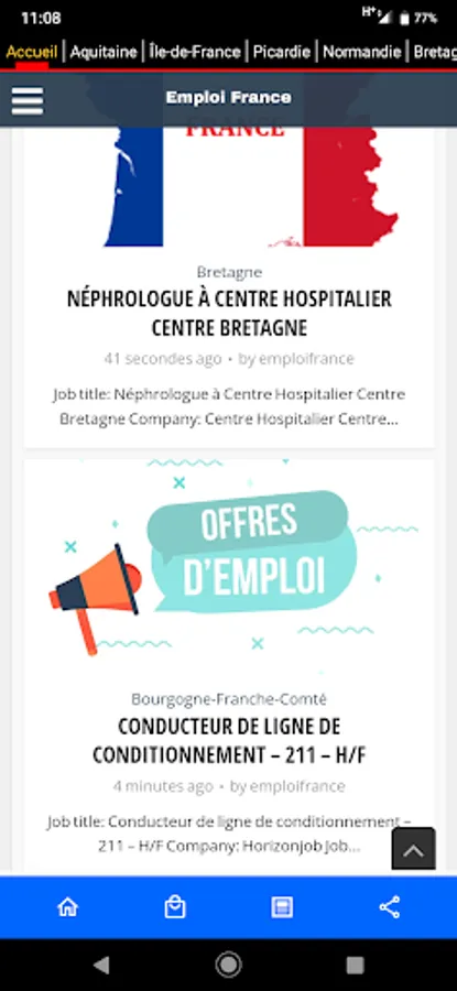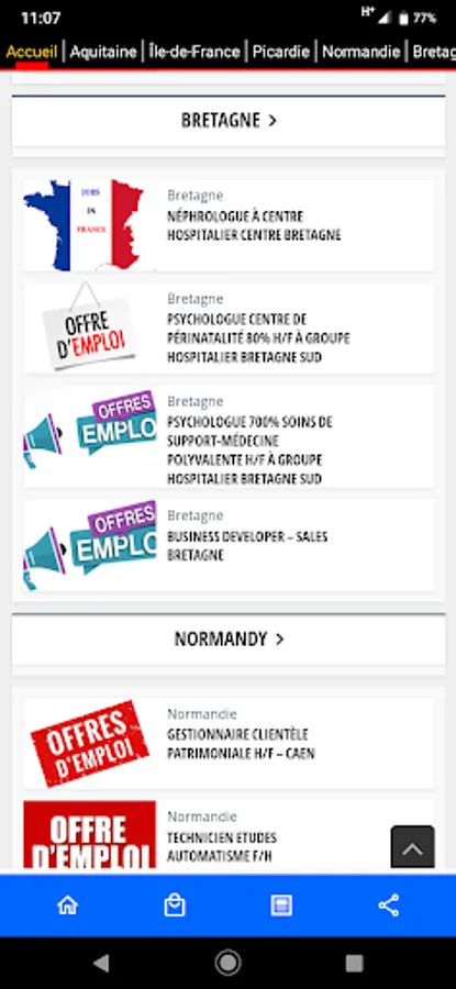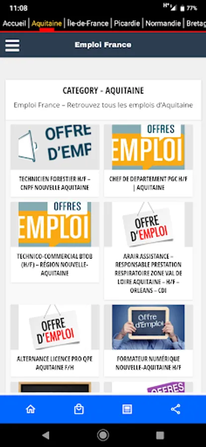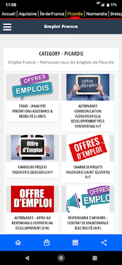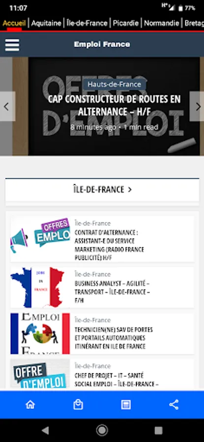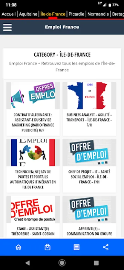 Emploi France is a completely free application. The application has all the appropriate tools to provide the best quality of service in terms of finding and finding a new job. In the application you will find sections related to each region of France. For example, you will find jobs for: