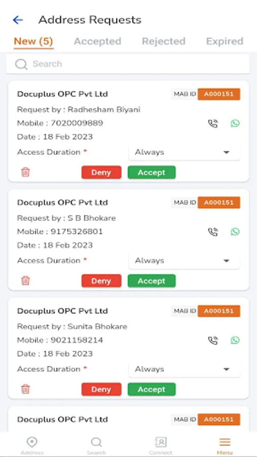 You can ask MAB Id to your friends, relatives or suppliers to reach their home or business places