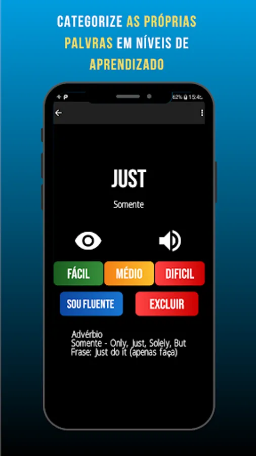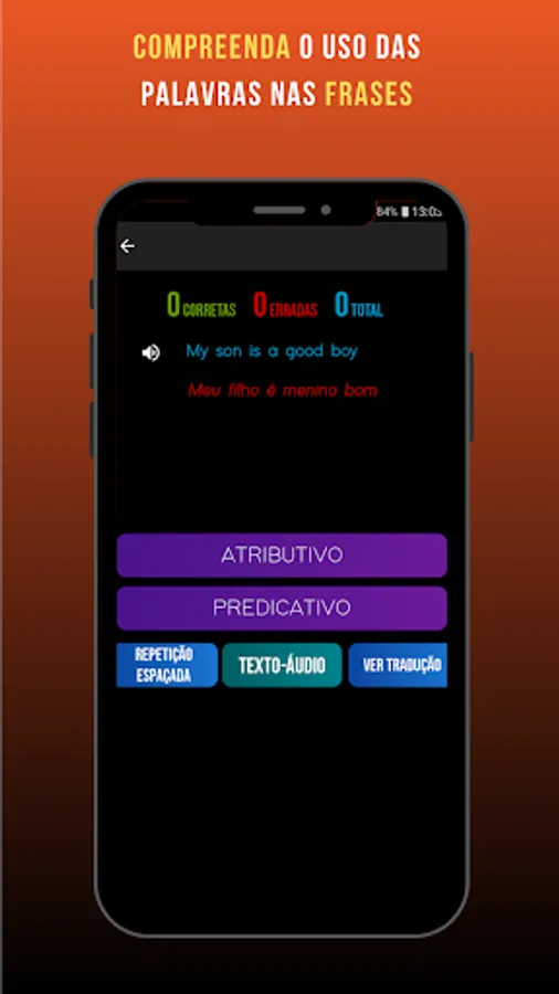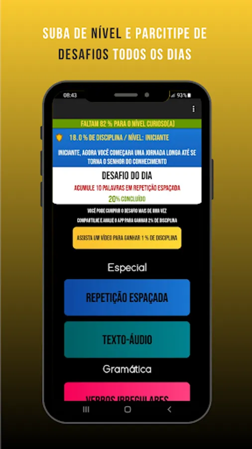 ENGLISH LEVEL - The app allows you to study English by leveling up. For every 100% discipline accumulated, you level up, starting at BEGINNER.