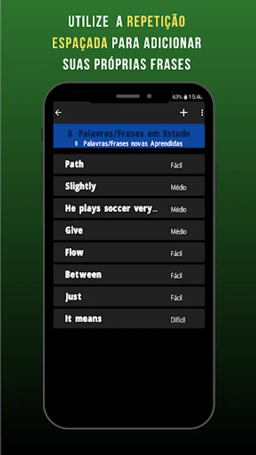 Spaced repetition – a special function created for the purpose of creating greater interaction with the language. Through spaced repetition you can add phrases that you find interesting or more complex, so that you can practice them daily and get used to them