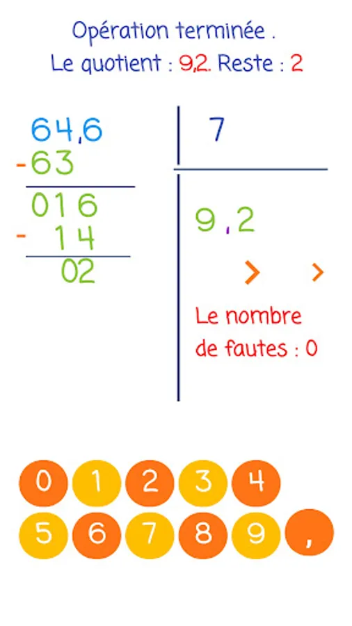This division application teaches you in a fun way to establish the operations of the division of whole numbers and decimal numbers.