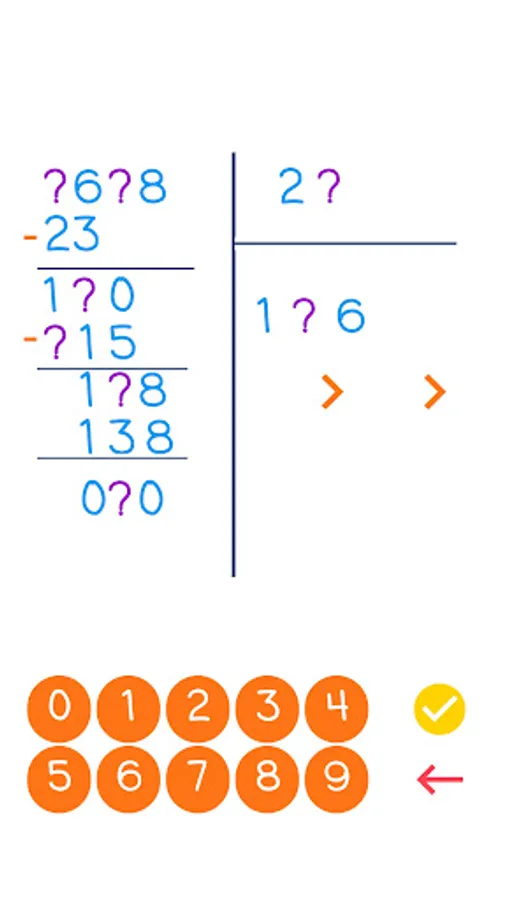This application also includes cloze division exercises: You are supposed to find the missing digits in divisions.