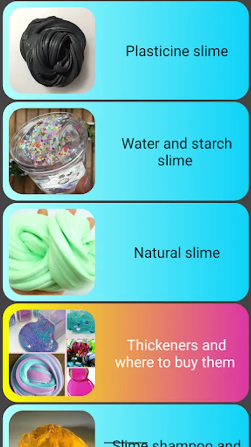 In the application, a lot of the best recipes for making slime at home are selected. And there will be a constant replenishment of new recipes how to make the slime yourself.