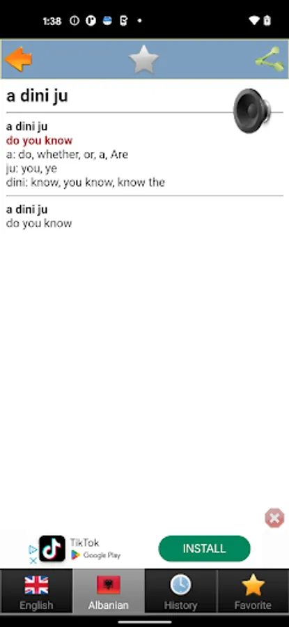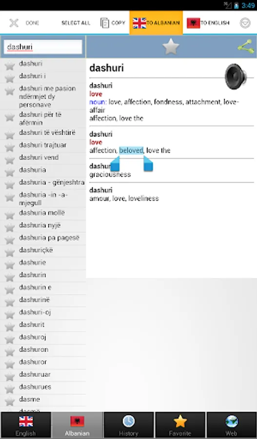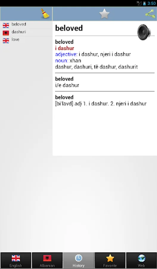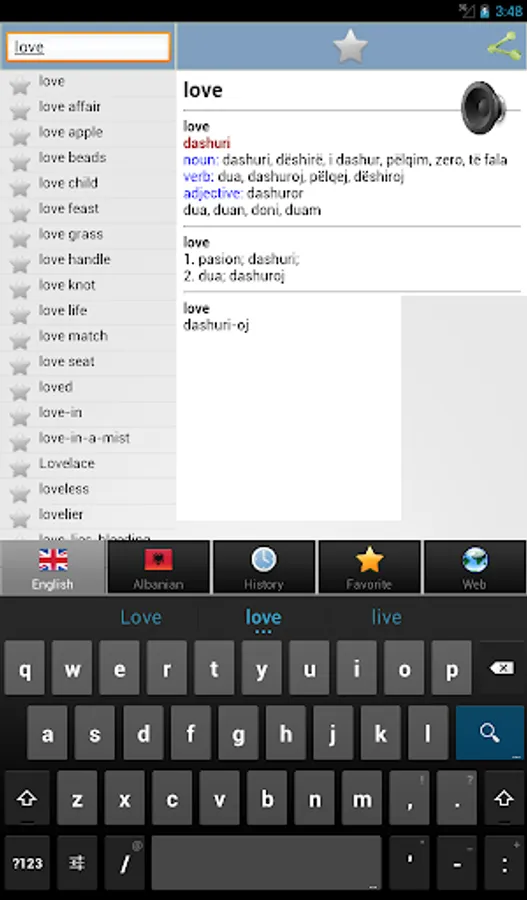 (Kjo kërkesë mund të kandidojë në menyren offline, por nevojë për lidhjen e internetit për shqiptim dhe shfletuesit web funksionet e.)