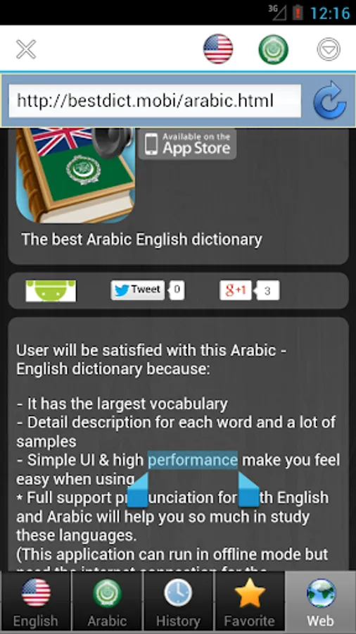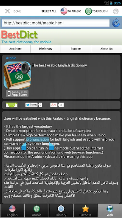 (This application can run in offline mode but need the internet connection for the pronunciation and web browser functions.)