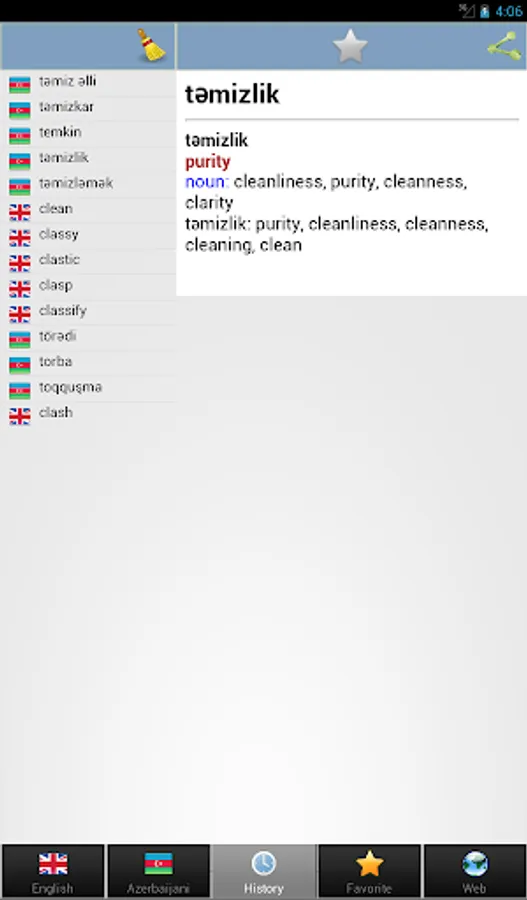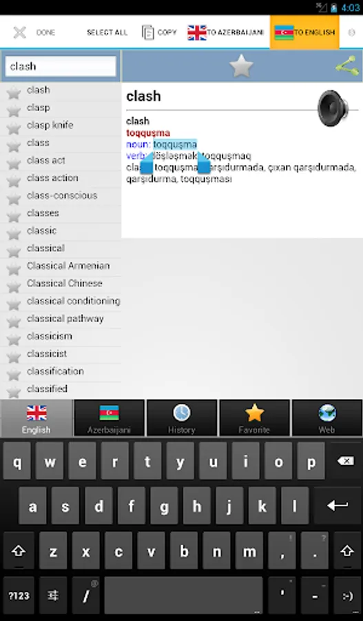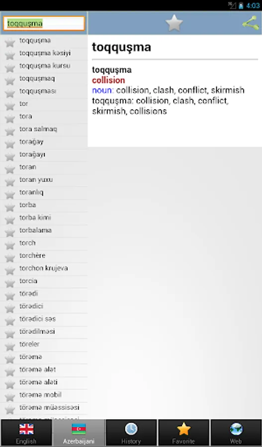 - Tərcüməçi və ya tərcüməçinin üçün , bu alət yalnız bir kran ilə siz tez yaxşı tərcümə və hər iki dildə tələffüz verəcək.