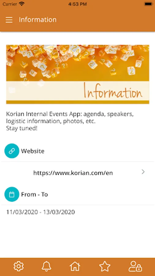 Korian Internal Events App: agenda, speakers, logistic information, photos, etc... Stay tuned!