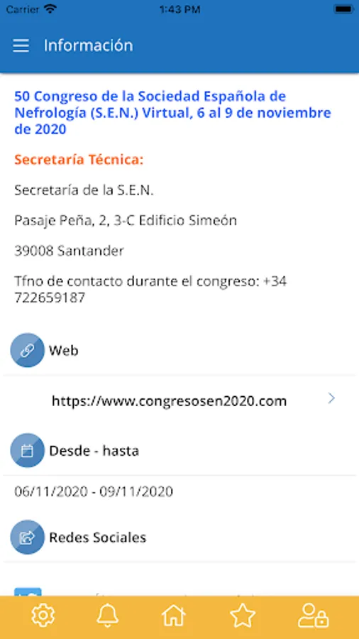 Official application of the 50th Congress of the Spanish Society of Nephrology (S.E.N) that will take place in virtual format from November 6 to 9, 2020.