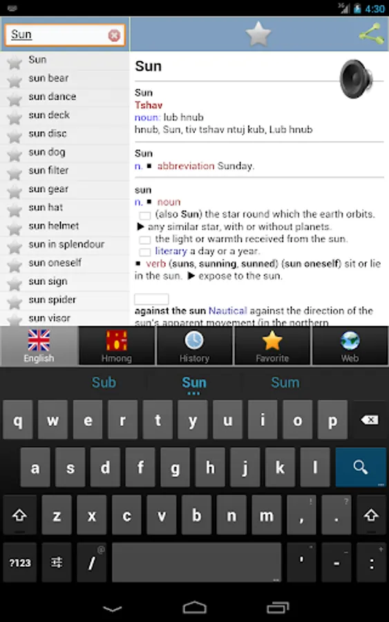 (This application can run in offline mode but need the internet connection for the pronunciation and web browser functions.)