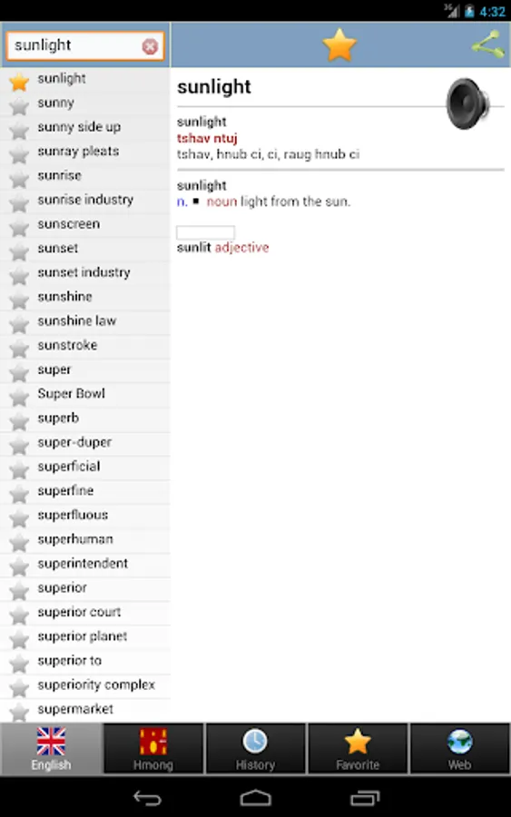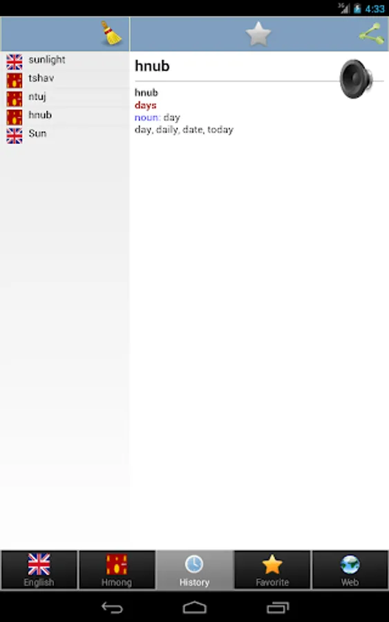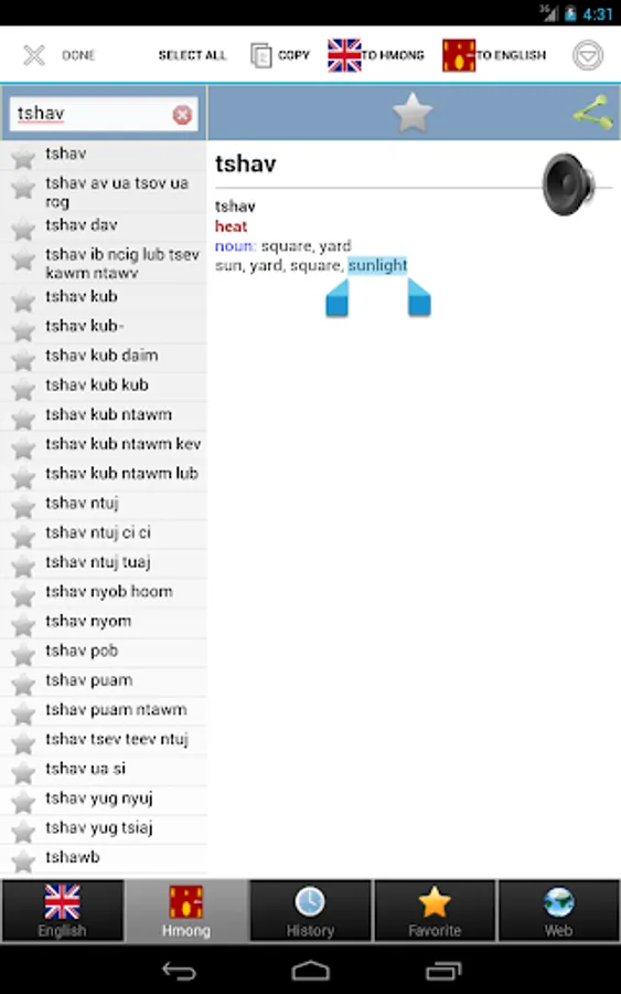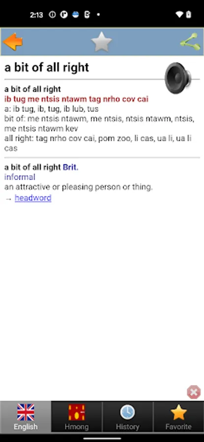 - Rau lub tshuab txhais lus los yog txhais lus , qhov cuab tam yuav muab rau koj sai sai zoo translation thiab kuj hais ntawm ob hom lus los ntawm tsuas yog ib kais.