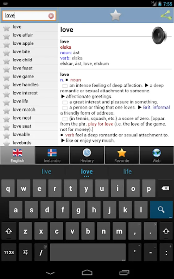 (This application can run in offline mode but need the internet connection for the pronunciation and web browser functions.)